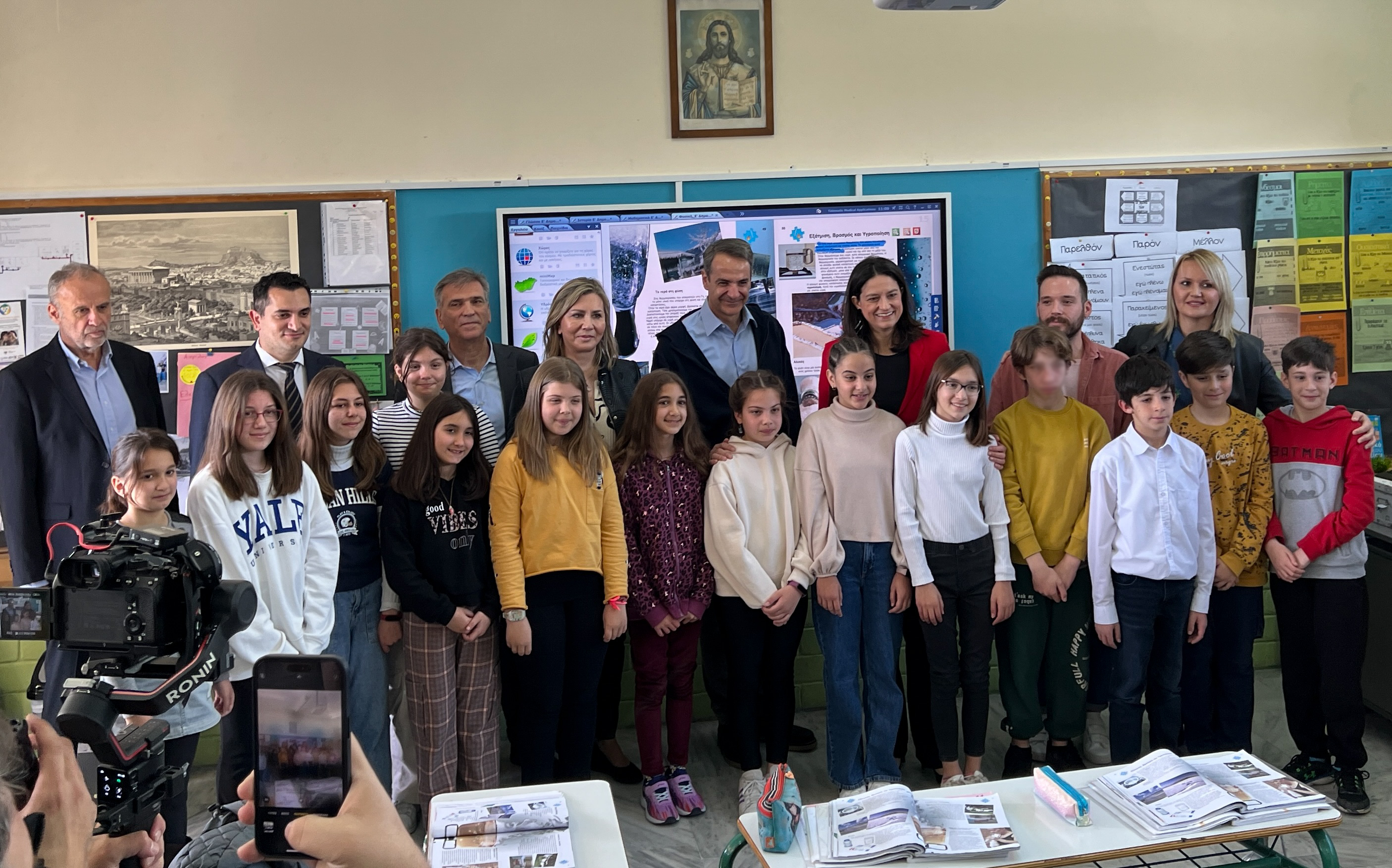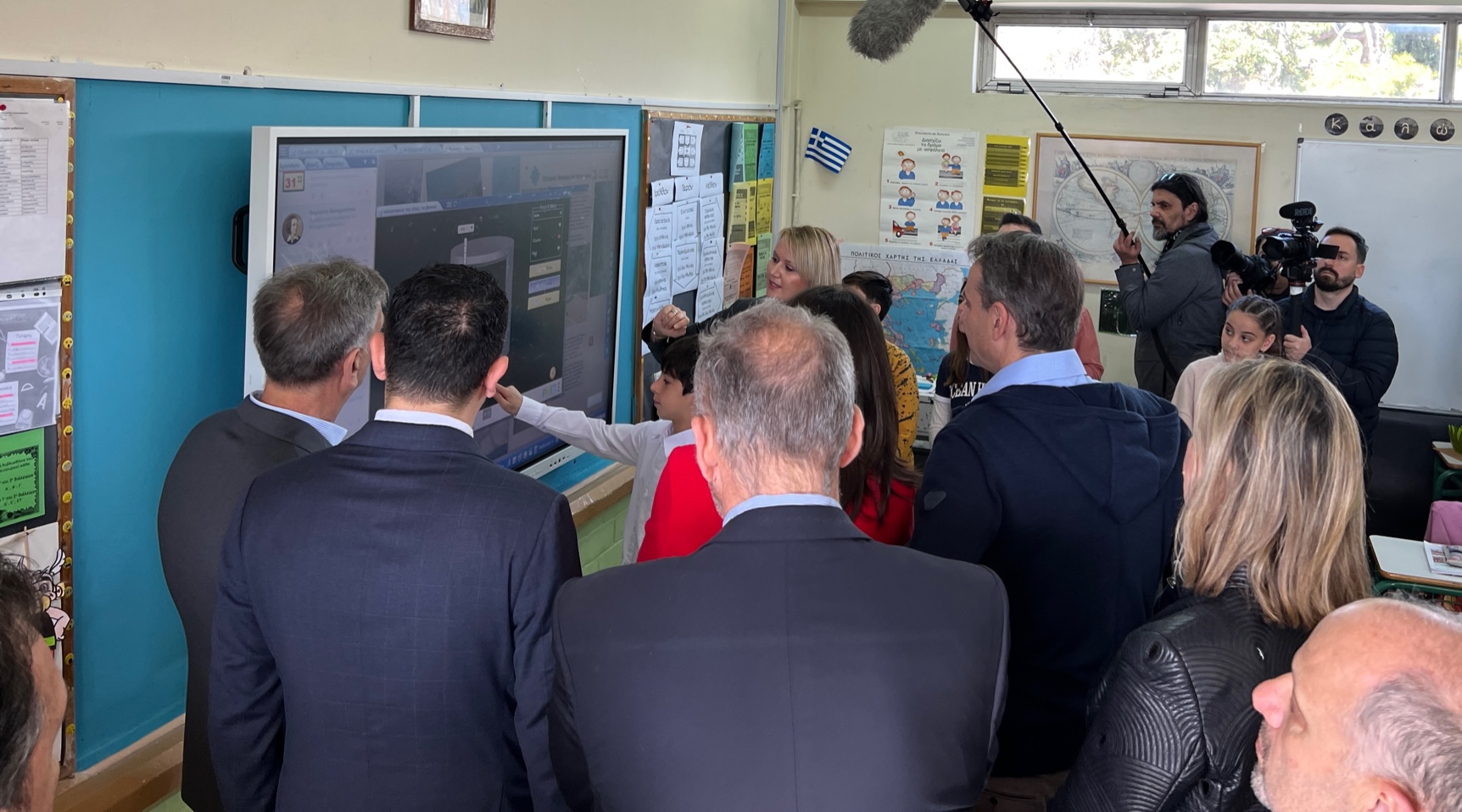 Ο Πρωθυπουργός βρέθηκε στο 7ο Δημοτικό Σχολείο Αγίων Αναργύρων, όπου είχε συνομιλίες με τους μικρούς μαθητές και τους εκπαιδευτικούς, ενώ παρακολούθησε τις δυνατότητες που παρέχονται στους μαθητές μέσω της νέας τεχνολογίας των διαδραστικών πινάκων.