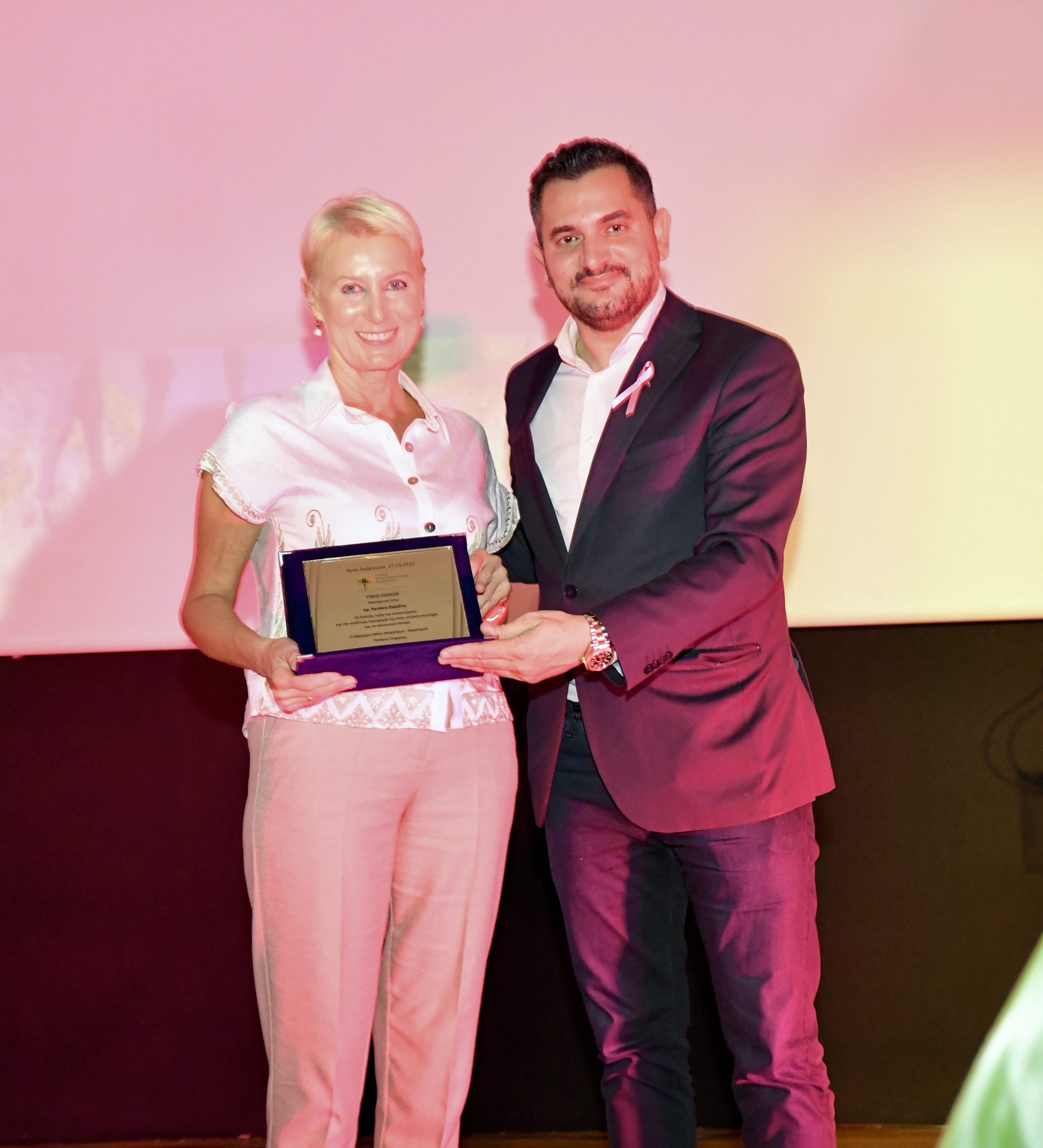 Θέλω να ευχαριστήσω από καρδιάς τη Δρ. Νατάσα Παζαΐτη, Διευθύντρια Κλινικής Χειρουργικής Ογκολογίας και Αποκατάστασης Μαστού στο Metropolitan General για την πολύ ενδιαφέρουσα ομιλία της, που ενθουσίασε το κοινό και την εκτενή και εμπεριστατωμένη ενημέρωση σχετικά με την πρόληψη, την θεραπεία και την αποκατάσταση.