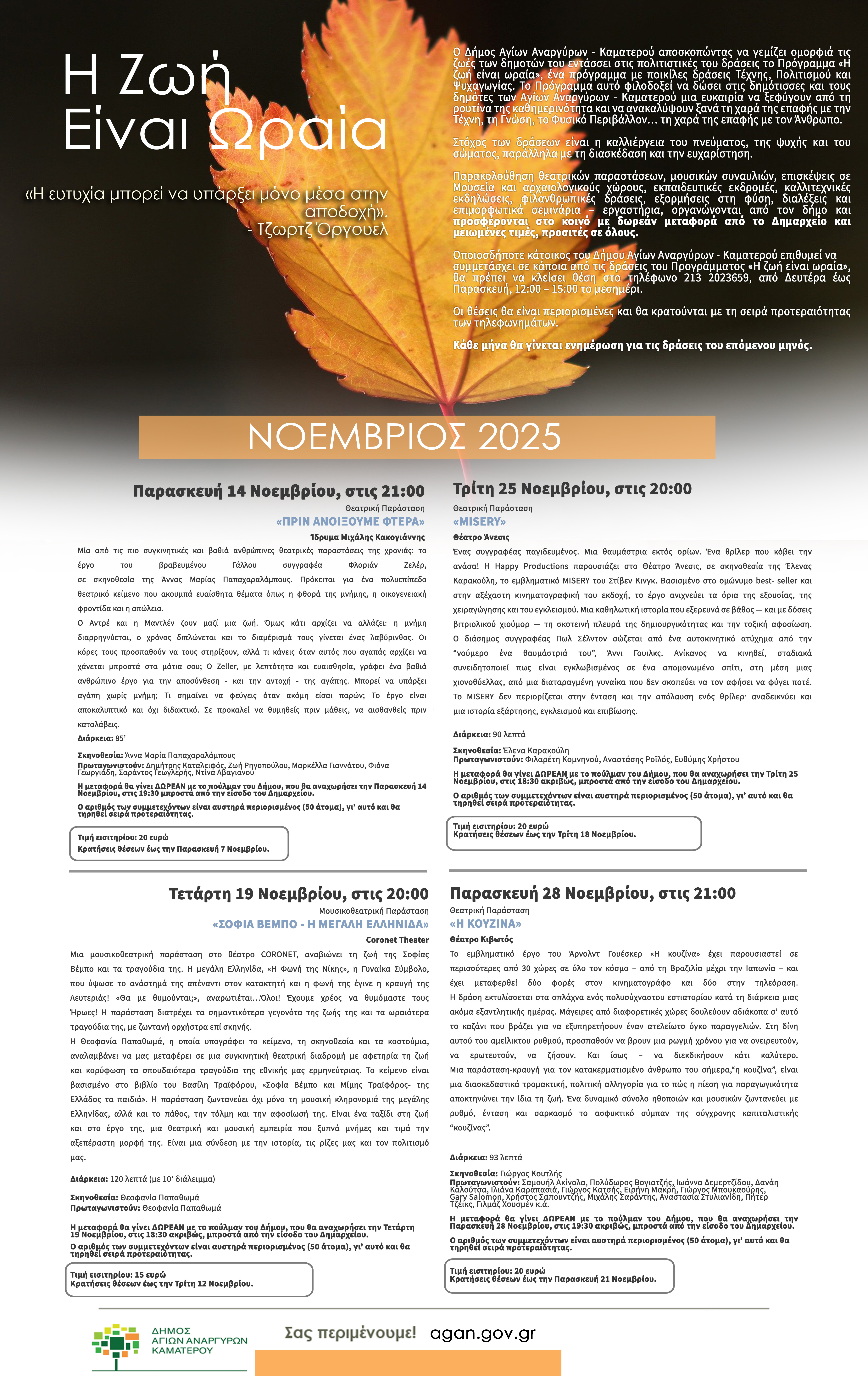 Η ζωή είναι ωραία τον Νοέμβριο του 2025 στον Δήμο Αγίων Αναργύρων-Καματερού