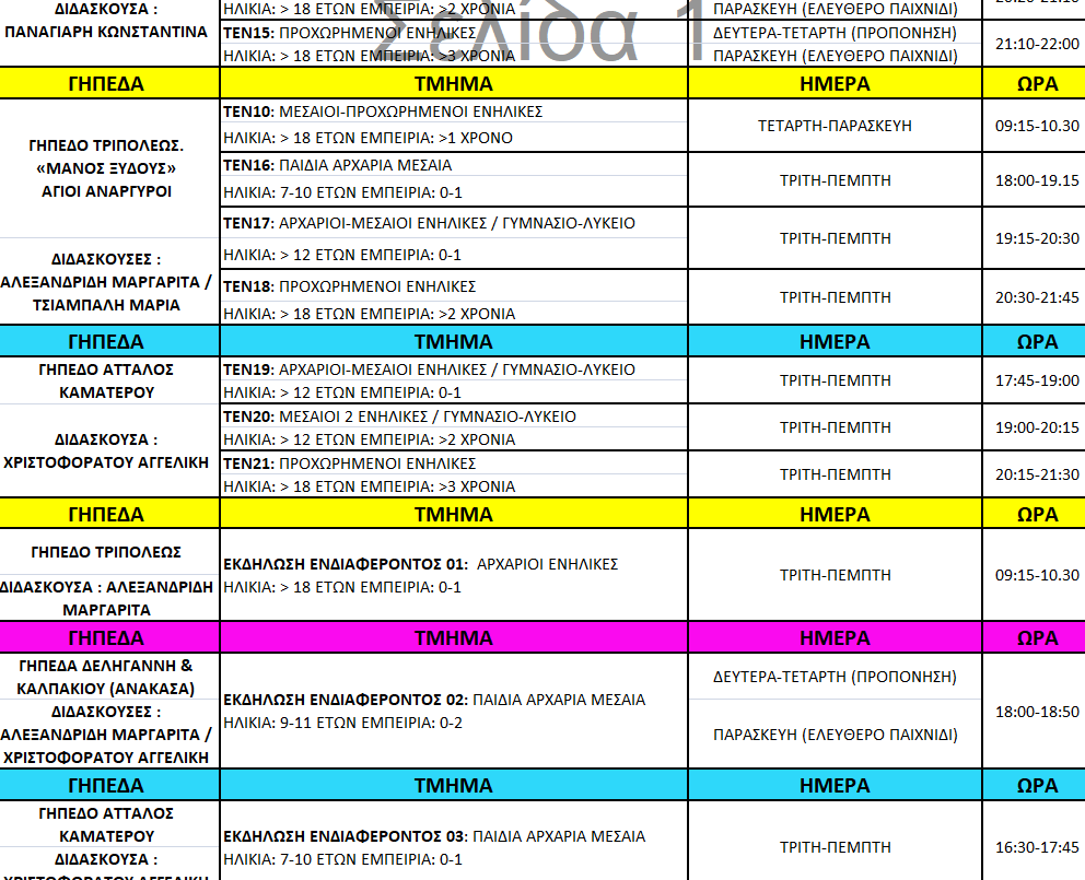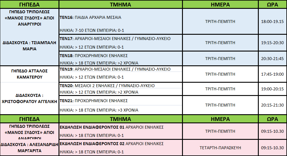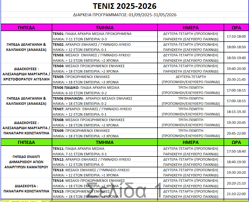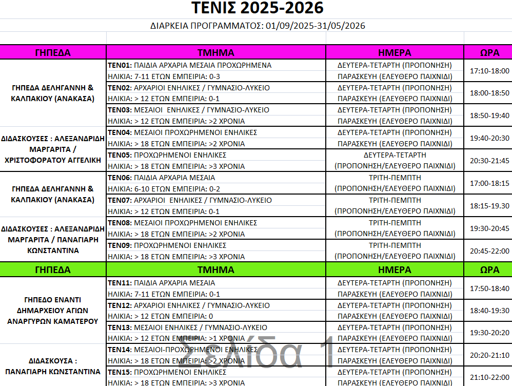Το άθλημα του τέννις απευθύνεται σε παιδιά άνω των 5 ετών και σε ενήλικες.