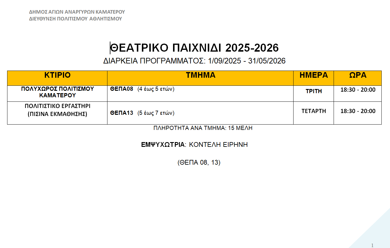 Το θέατρο πέραν από καλλιτεχνικό και ερευνητικό μέσο αποτελεί και εκπαιδευτικό εργαλείο. Μέσα από την θεατρική αγωγή, τον θεατρικό αυτοσχεδιασμό και το θεατρικό παιχνίδι καλλιεργούμε την προσωπικότητά μας και αποκαλύπτουμε έναν θεραπευτικό χαρακτήρα στην θεατρική τέχνη! Σαφέστερα, μέσα από ενιαίες θεματικές θεατροπαιδαγωγικών εργαστηρίων που δύναται, λόγω χάρη, να συσχετίζονται με την καταπολέμηση της ενδοσχολικής βίας, την οικολογική συνείδηση, την καλλιέργεια των συναισθημάτων, την σημασία της οικογένειας και άλλων, επιδιώκονται αποτελέσματα και σκοποί όπως: Εξωστρέφεια συναισθημάτων, κοινωνικοποίηση, θετική αυτοεικόνα και αυτοπεποίθηση, καταπολέμηση του μοναχικού αισθήματος και της βίας, τόνωση του συναισθήματος της δημιουργίας. Το θεατρικό παιχνίδι (και τα συναφή του όπως το ψυχόδραμα και η δραματοθεραπεία) ως έκρηξη δημιουργικότητας μας ενθαρρύνουν και μας ψυχαγωγούν. Μέσα σε αυτό το πλαίσιο, εκμεταλλευόμαστε και το εικαστικό υλικό (ζωγραφική, κεραμική, πηλός κτλ), τους μουσικούς ήχους αλλά και παιδικές μορφές θεάτρου (όπως την προετοιμασία θεατρικών παραστάσεων με θεματική παρμένη από παραμύθια, το κουκλοθέατρο και το Θέατρο Σκιών/ Καραγκιόζης). Έτσι, προσφέρουμε στους μικρούς μας φίλους και όλους τους ενδιαφερόμενους θεατρική παιδεία, χαμόγελα, ξεγνοιασιά, ψυχαγωγία, δημιουργικότητα και καλλιτεχνική ευαισθησία!
