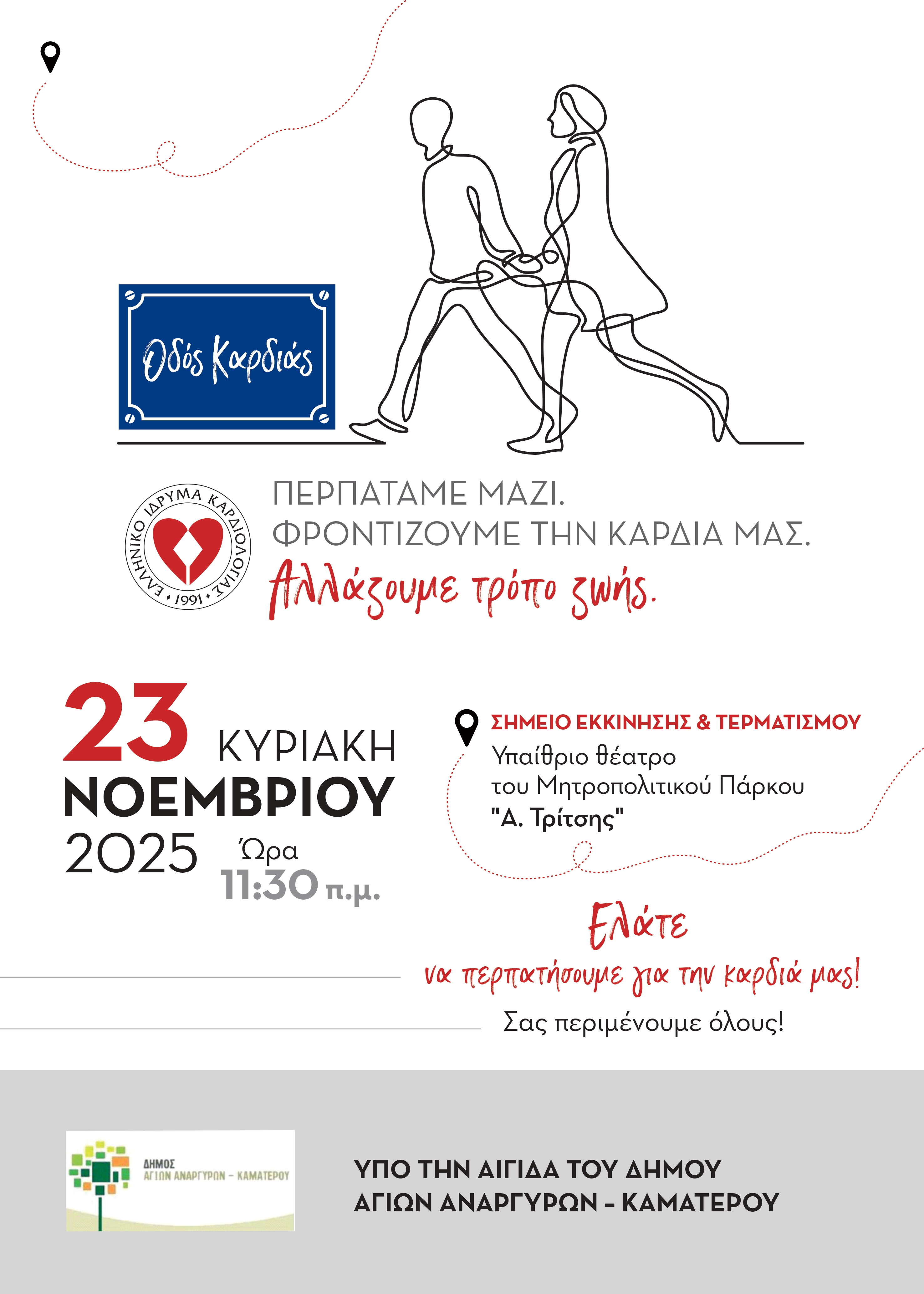 • Φροντίζουμε την καρδιά μας, περπατάμε μαζί την Κυριακή 23 Νοεμβρίου 2025