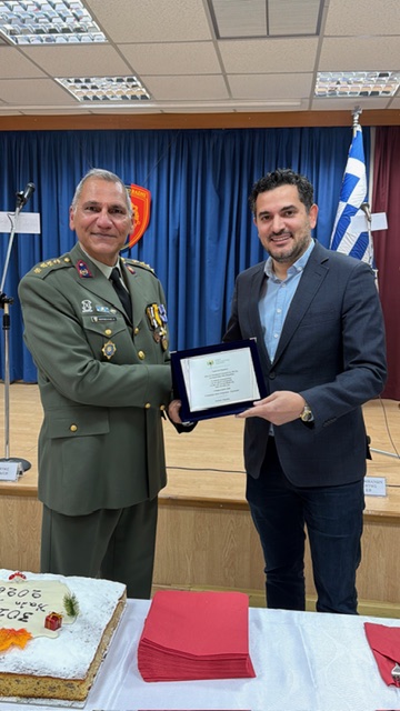 Ο Δήμαρχος απένειμε τιμητική πλακέτα στον κ. Μαρινέλλη, εκφράζοντας τον σεβασμό και την εκτίμηση του Δήμου προς το έργο και τη συμβολή των Ενόπλων Δυνάμεων.