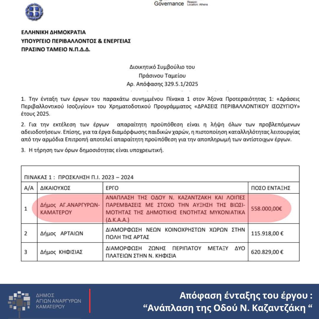 Σήμερα, με ιδιαίτερη ικανοποίηση, ανακοινώνουμε ότι υπάρχει επίσημη απόφαση ένταξης του έργου στις χρηματοδοτήσεις του Πράσινου Ταμείου. Πολύ σύντομα θα ξεκινήσει η διαδικασία δημοπράτησης, ώστε το έργο να μπορέσει να ξεκινήσει μέσα στο 2026, δίνοντας οριστική λύση στη γειτονιά αυτή, προσφέροντας στους κατοίκους ασφαλή προσβασιμότητα .