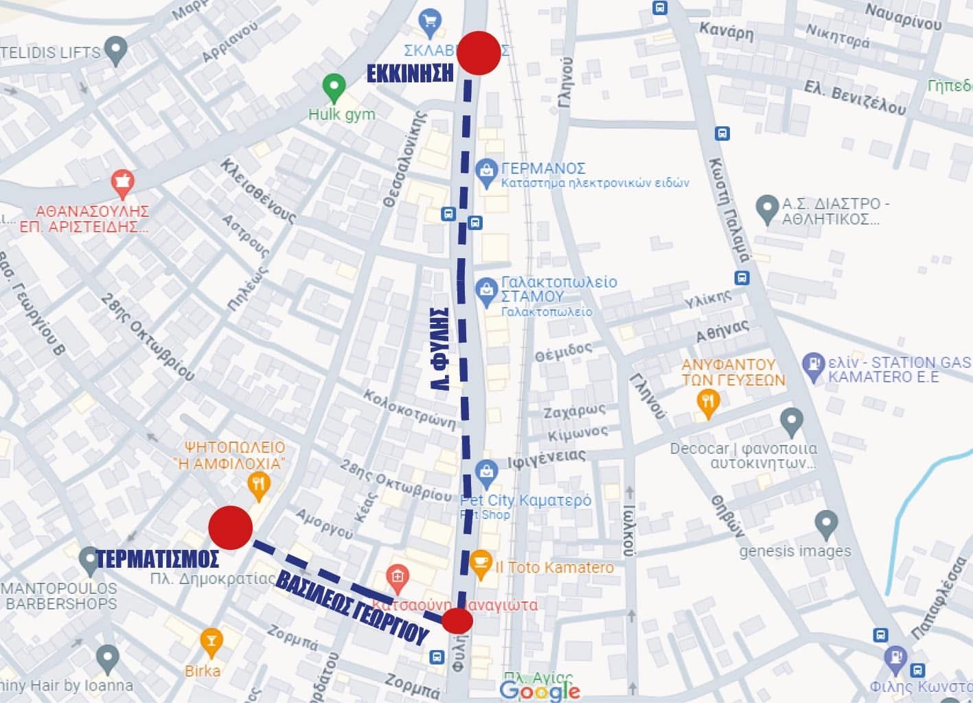 Ενημερώνουμε τους δημότες μας ότι λόγω της διεξαγωγής της Καρναβαλικής Παρέλασης, επί της Λ. Φυλής την Κυριακή 15 Φεβρουαρίου 2026, θα πραγματοποιηθεί προσωρινή εκτροπή της κυκλοφορίας από τις 10:00 - 14:30 και στη διαδρομή από τη Λ. Φυλής και τη συμβολή της με τη Λ. Καματερού (στάση Γαβαλά) έως και τη Λ. Φυλής και τη συμβολή της με τη Βασιλέως Γεωργίου και εν συνεχεία επί της Βασιλέως Γεωργίου έως την Πλατεία