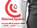 Εθελοντική αιμοδοσία τη Δευτέρα 20 Οκτωβρίου 2025